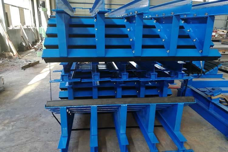 1、皮帶和緩沖條之間是有間隙的,這里緩沖條的兩端都有設(shè)計(jì)的托輥,保證皮帶與緩沖條之間的間距,這是重緩沖。
