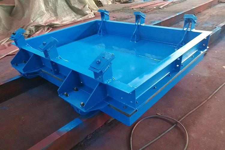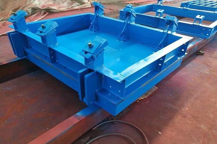 防水防火密閉門是煤礦井下主要的安全防護門之一,用于井下主變電所和主排水泵房通往井底車場的通道內(nèi),容易關(guān)閉,以防止水的突然浸入,承受壓力可達98KPa。防水防火密閉門門扇為平鋼板、井字筋板、圈梁等組焊而成,門框為槽鋼、工字鋼組合框架結(jié)構(gòu),拉緊裝置為楔形滑塊楔緊,安裝時按我廠原有設(shè)計將門組裝好,按照事先預(yù)留好的位置將門與硐室門口連成一體。